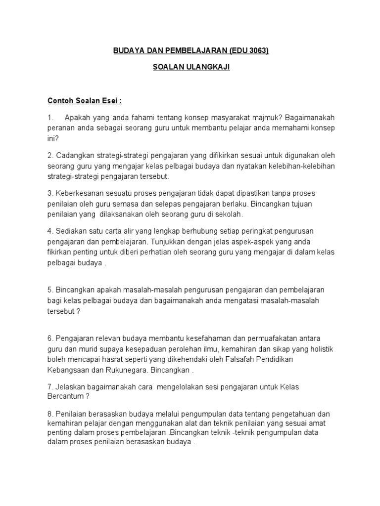 Contoh Soalan Masalah Dalam Pembelajaran